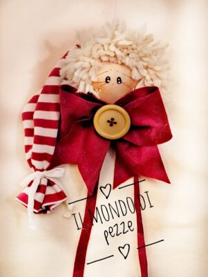 il kit contiene le spiegazioni e il materiale per realizzare un elfetto su fiocco