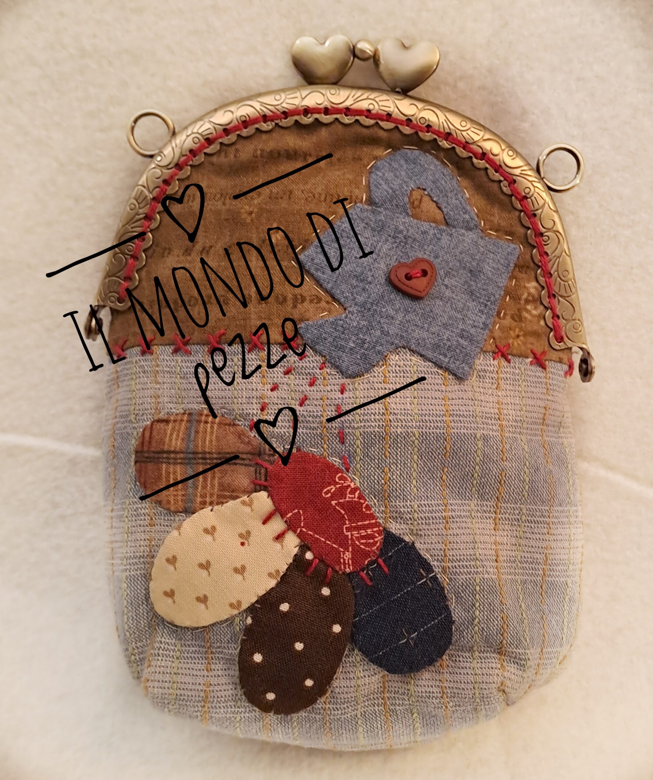 Il kit contiene le spiegazioni e il materiale per realizzare una pochette con chiusura clickclack di 12 cm