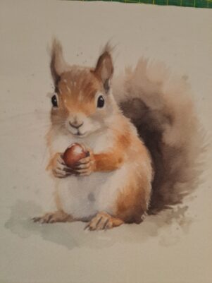 vignettadi cm 20×20 di ciniglia con stampato uno scoiattolo