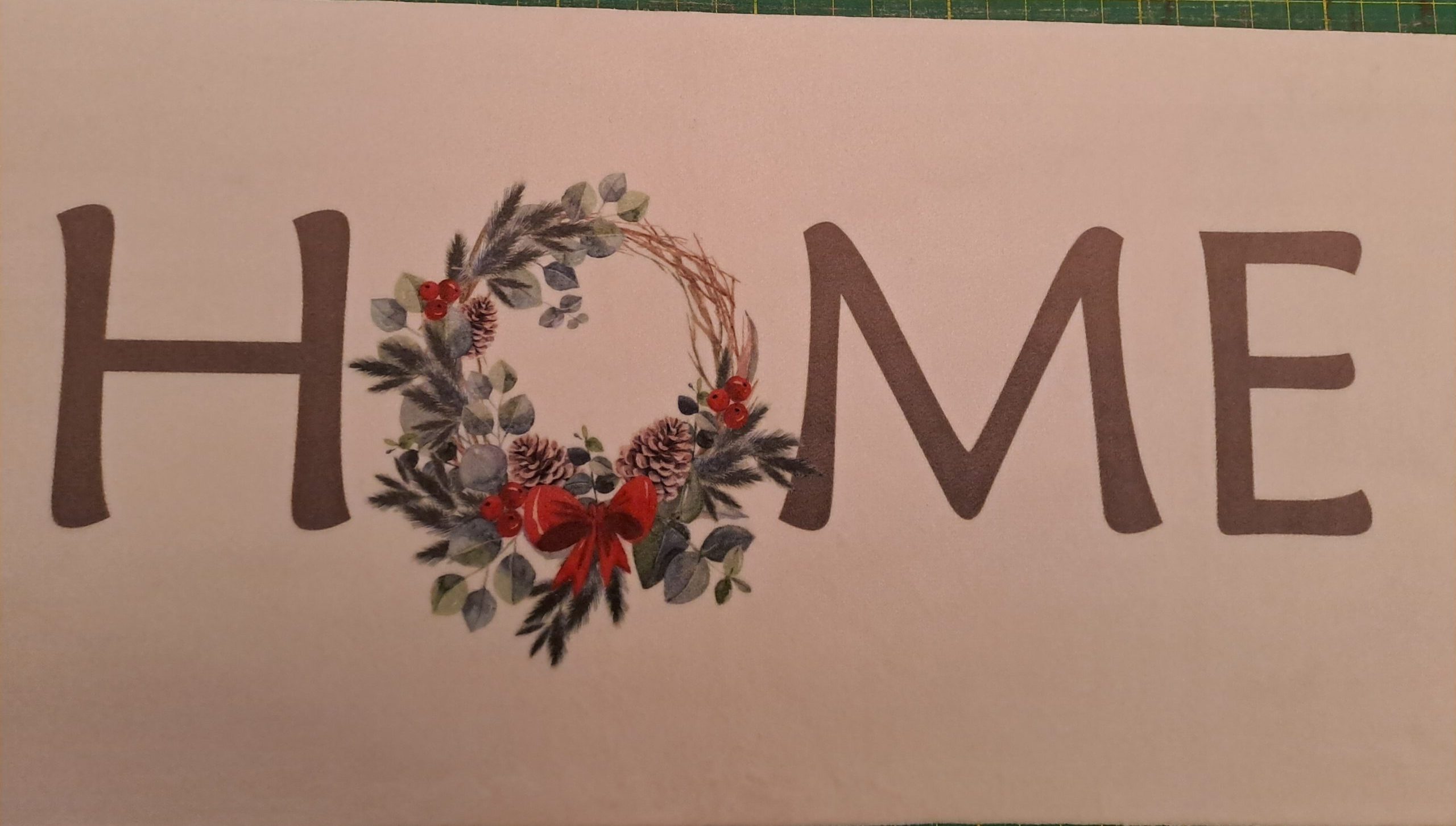 vignetta di cm 20×50 di ciniglia con stampata la sritta home
