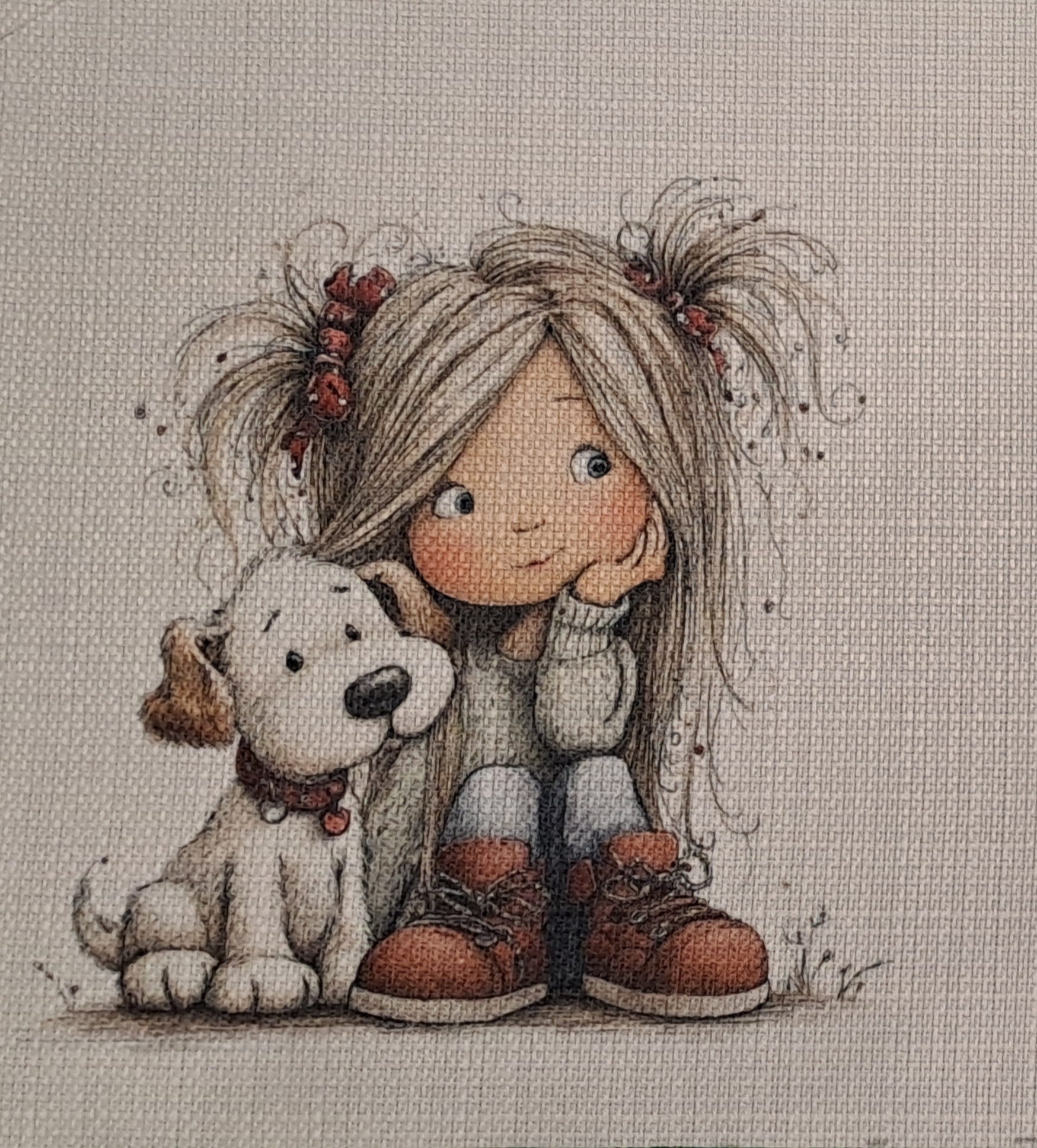 Tessuto di 20×48 con due vignette stampate in color naturale
